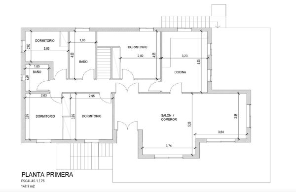On the ground floor there are 2 bedrooms, 2 bathrooms and a small kitchen with access to the covered and open terraces of the pool area. On the first floor there are 4 double bedrooms, 3 bathrooms, a living/dining area with access to an L-shaped terrace and a fully equipped kitchen with breakfast area.